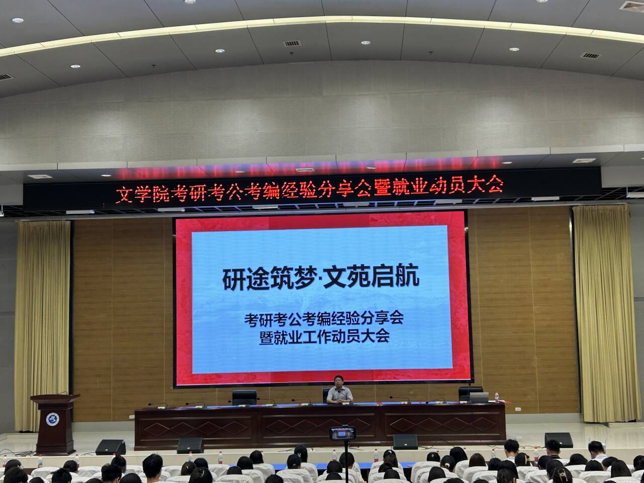 为助力伟德国际1946bv官网学子明确升学就业方向,激发备考热情,5月20日晚,伟德国际1946bv官网“研途筑梦·文苑启航考研考公考编经验分享会暨就业动员大会”在学术报告厅隆重举行。伟德国际1946bv官网院长郝文华、学工办主任魏东、辅导员杨超老师出席会议并发表讲话,会议由杨超老师主持。