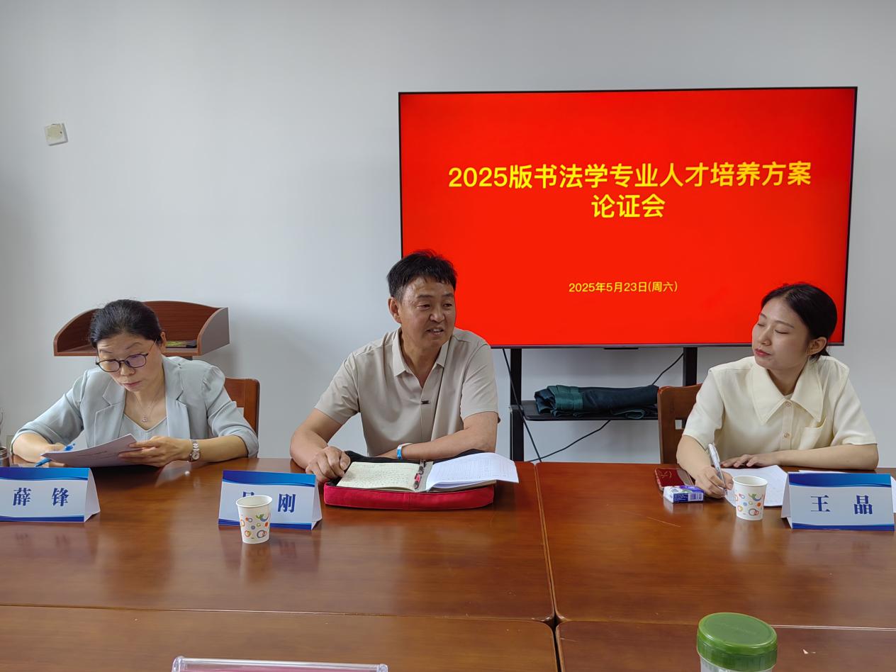 2025年5月24日上午,伟德国际1946bv官网召开论证会,邀请十堰武当印社社长吴刚、十堰市鹿鸣书院联合创始人薛锋、十堰市东风52小学专职书法教师王晶等校外专家对伟德国际1946bv官网2025版人才培养方案问诊把脉。伟德国际1946bv官网伟德国际1946bv官网教研室全体教师、学生代表参会,大家围绕新时代书法人才培养方案展开深度交流。