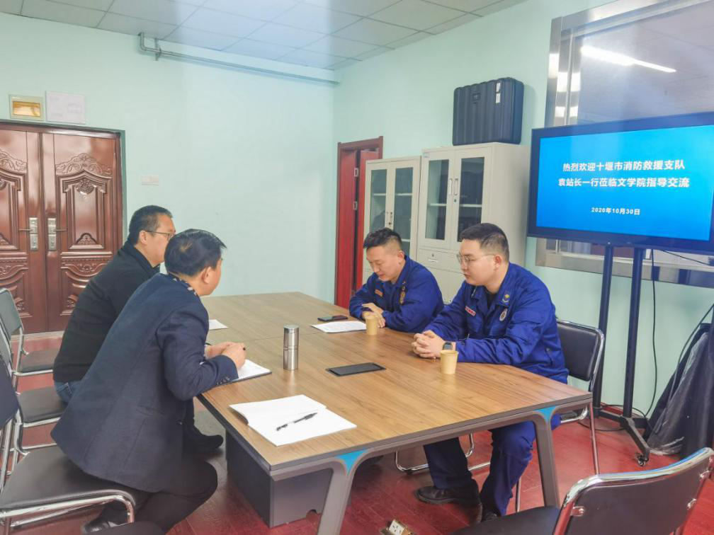 10月30日上午,十堰市消防救援支队科长袁占彪、科员陈晨莅临伟德国际1946bv官网交流,院长郝文华、新闻传播教研室主任戴文雄、教师代表杨思宇与史鑫涛参加会议,双方就十堰市消防救援支队全媒体中心与伟德国际1946bv官网的合作事宜进行了会谈。