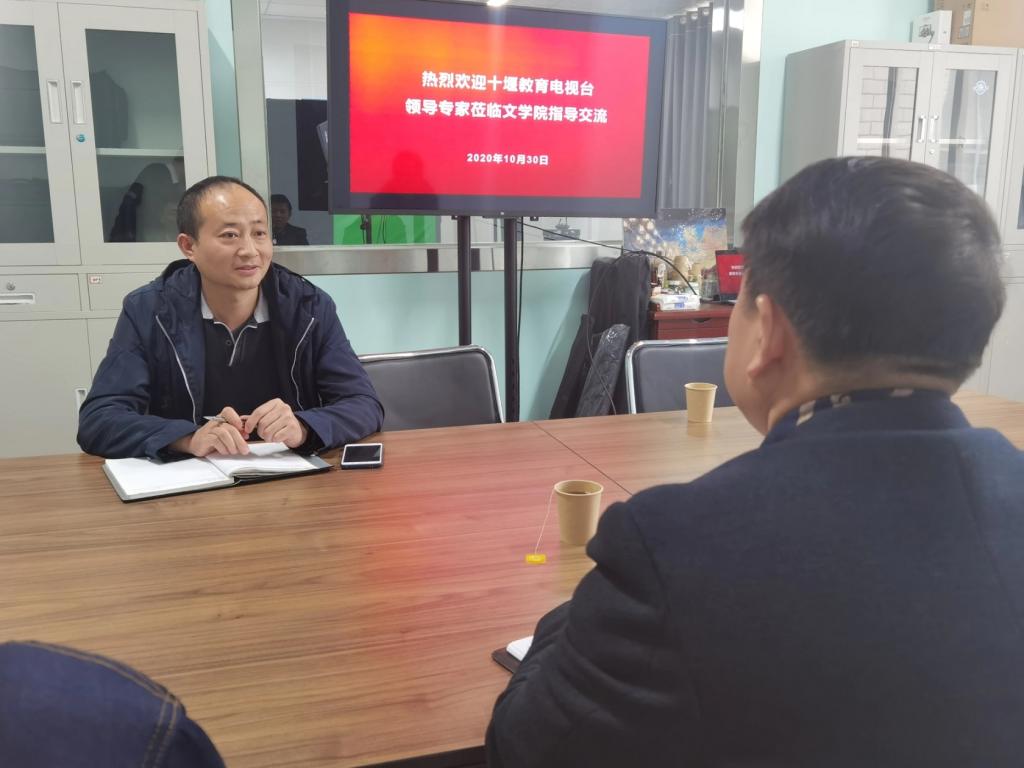 下午2点30分,十堰教育电视台台长助理马从兵到伟德国际1946bv官网交流指导。院长郝文华教授,新闻传播教研室主任戴文雄老师,广播电视编导专业教师杨思宇和史鑫涛与会。