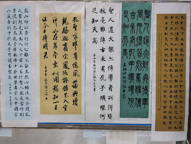 伟德国际1946bv官网对此次活动高度重视,组织伟德国际1946bv官网学生积极投稿,共征集书法作品65件,现场展出优秀作品37件。作品以古代经典诗文和红色主题文本为书写内容,形式古雅别致,展示了书法专业学生的书法水平和文化修养。