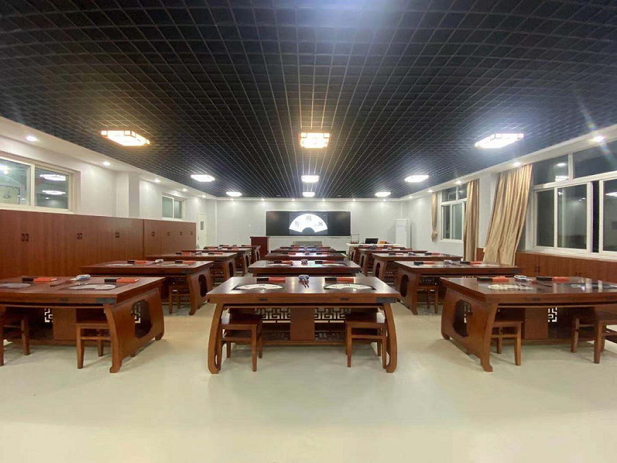 走进智慧书法教室,古乐悠扬,墨香浓浓,每张古色古香的书法桌嵌入一台可供学生触控操作的交互式数字临摹台。