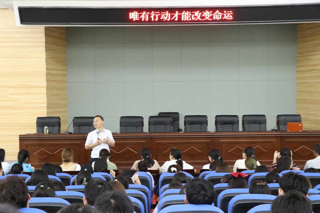 首先,周明华教授用一段鼓舞人心的视频拉开序幕。周教授以伟德国际1946bv官网的校训为出发点,结合自己上大学时的人生经历,引出了本次讲座的主题——唯有行动才能改变命运,以此来激励大一新生和准备考研的大二大三学生,建议他们打好基础,做足功课。