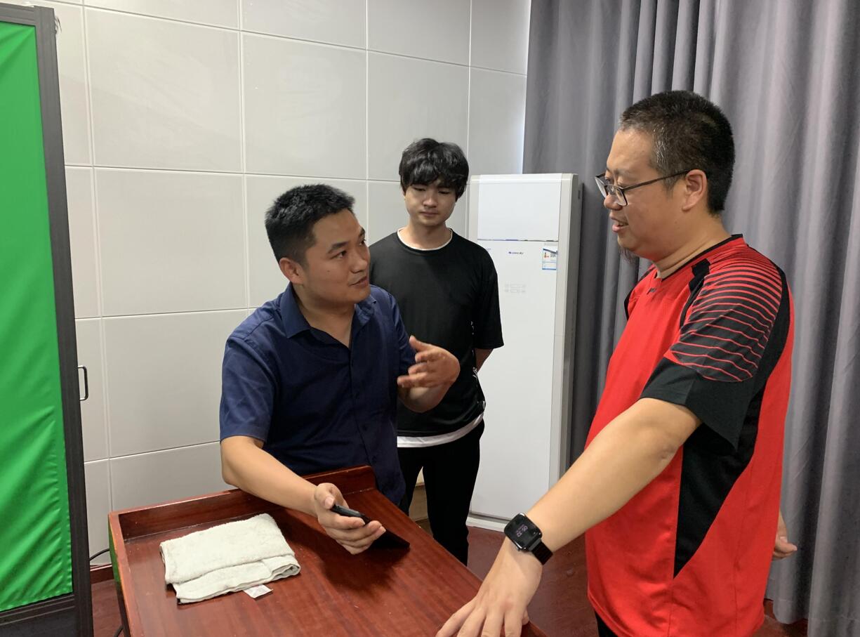 戴老师向余总介绍了网络与新媒体专业的职业技能和实验实训条件,并带他逐一参观了直播实训室。