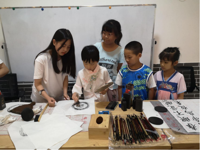 为解决暑期乡村留守儿童的托管问题,引导孩子们过一个安全快乐充实的暑假,湖北诗缘茶旅文化公司在村里举办了暑期书法培训托管班。培训班邀请了地方著名的书画家张晓林亲自指导孩子们学习中国书法技艺。张晓林老师是国家一级美术师,湖北省书画家协会理事、神农架书画院院长。