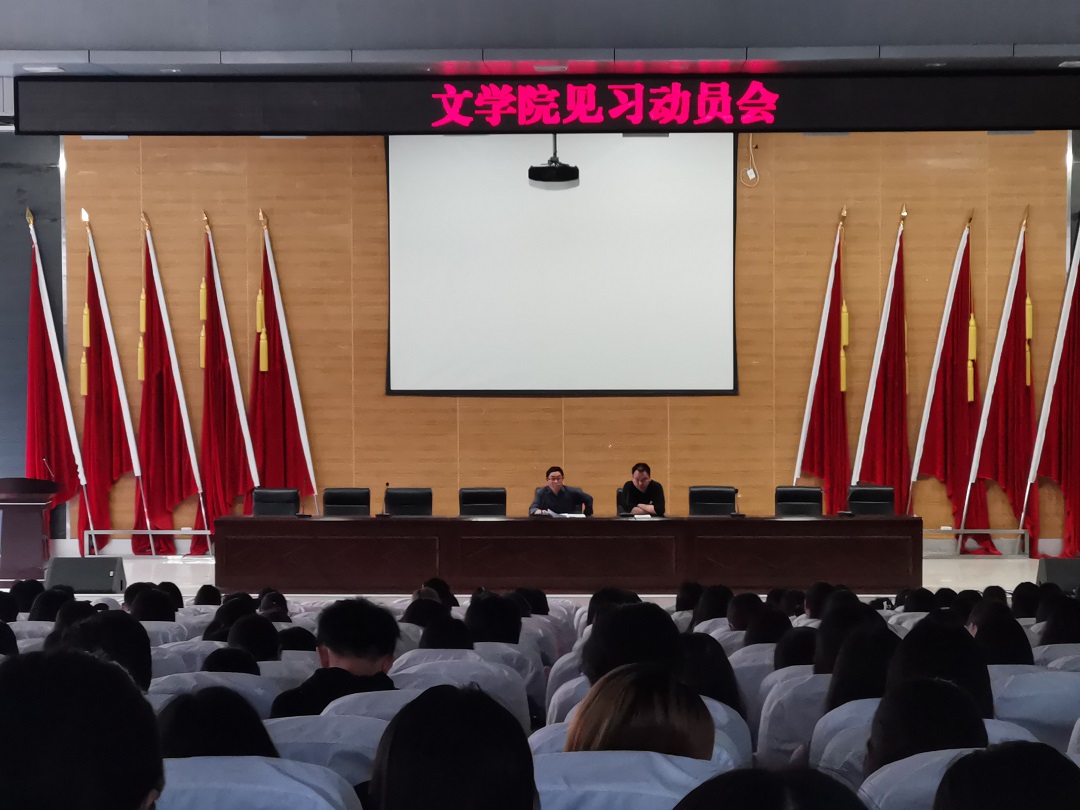 2021年5月7日下午4点30分,伟德国际1946bv官网在图书馆二楼学术报告厅召开汉语言文学专业见习动员会。伟德国际1946bv官网副院长曹国军教授、学工办主任彭涛老师、部分指导老师、辅导员,全体汉语言专业学生参加了本次会议。