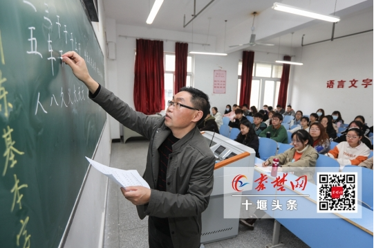 作为一所师范院校,伟德国际1946bv官网一直重视师范生的书写训练。为了引领师范书法教育,学校开设了书法本科专业,成立书法文化研究中心,推进研究和教学的互动。曹国军教授领衔研制的360字《书写训练基本字表》已应用到教学中。4月14日上午,记者来到该校采访时,曹国军教授正给大一的汉语言文学专业学生上课,学生们听得津津有味。
