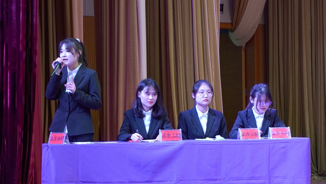 比赛开始前,彭涛主任上台为所有的辩友们加油打气。双方辩友围绕“面对困难需要更多勇气?还是改变困难需要更多勇气”这一辩题展开辩论。比赛过程中双方辩友唇枪舌剑,互不相让,现场气氛热烈。