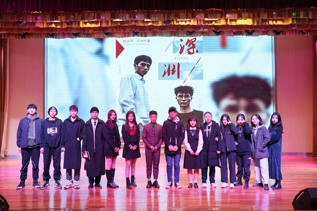 接着放映的短片是《深渊》。此片聚焦校园霸凌和校园贷两个时下与大学生紧密相关的话题,讲述了因家境一般而自卑的大学生刘禾,为了获得他人的关注,在虚荣心的裹挟和欲望的吞噬下,一步步走向犯罪深渊的悲剧。这是一部反映现实主义的短片,揭示了看似风平浪静的大学校园中存在的暗流涌动的诱惑与陷阱。钟真老师对此片给与高度赞赏,他从剧本选材、故事节奏、服化道处理、后期剪辑等角度做了深刻点评。