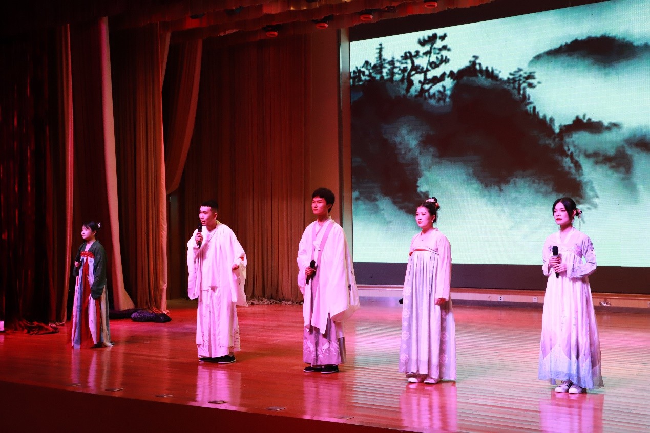 本次朗诵汇演节目异彩纷呈,有水袖舞蹈、唐装朗诵、现代朗诵、汉服演诵、民国诗诵、革命话剧、主旋律诗诵、国粹京剧、名篇朗诵、师生演诵、集体唱颂,呈现了一场诗文盛宴。