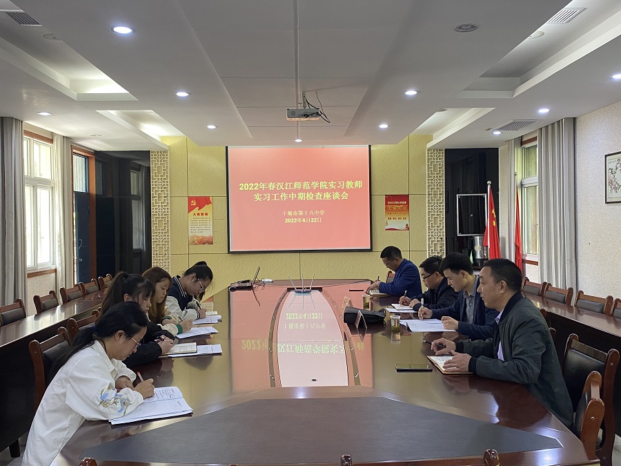 为深入了解2022届师范生教育实习情况,提高师范专业实践教学质量,4月22日伟德国际1946bv官网副院长曹国军、实习带队老师周春雨前往张湾区开展教育实习中期检查。十堰市第十八中学校长余新山、副校长徐辉波、教导处、实习指导教师以及各实习生参加了座谈会。
