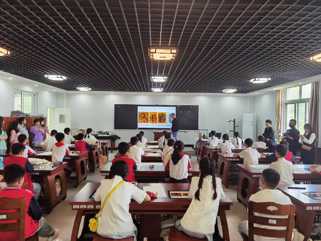 4月22日上午10点,十堰市人民小学30余名学生在郝良莉、黄义伟等老师的带领下,参观我院数字书法实验室,体验现代科技与传统艺术结合的魅力,感受书法文化之美。