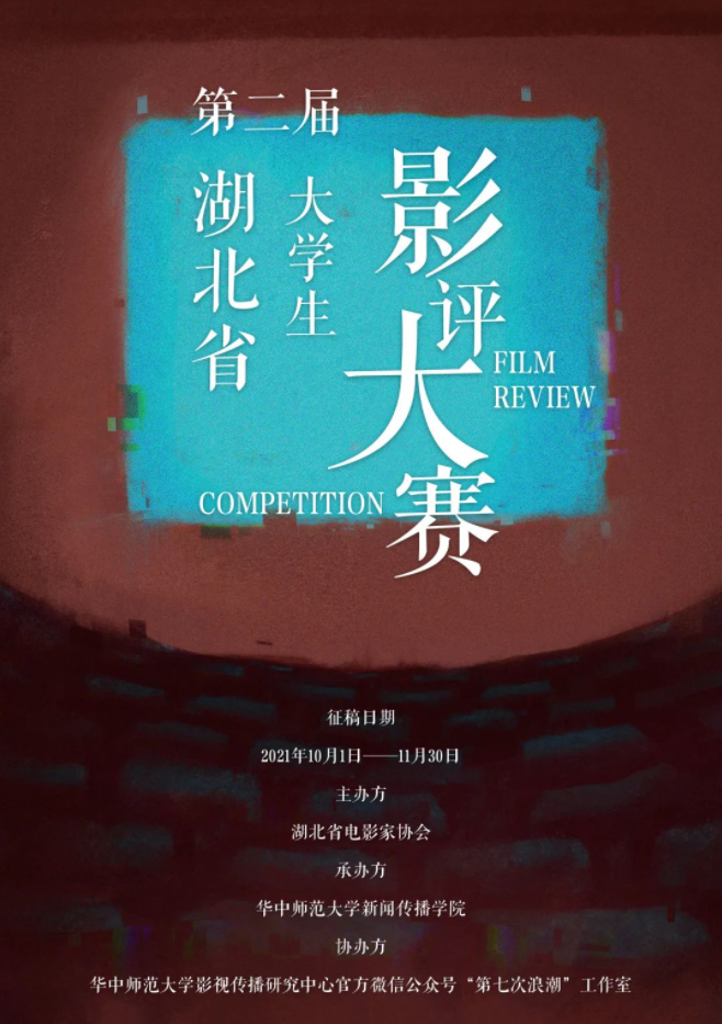 为响应教育部“五育并举”的号召,体现湖北高校影视美育教育成果,展示当代大学生良好的精神面貌与人文修养,湖北省电影家协会举办第二届湖北省大学生影评大赛,特面向全省各高校大学生征稿。本届大赛由湖北省电影家协会主办,华中师范大学新闻传播学院承办、华中师范大学影视传播研究中心官方微信公众号“第七次浪潮”工作室协办。本次大赛面向湖北省各高校全体学生征稿,包括专科生、本科生和研究生等,鼓励各高校老师推荐学生参赛。