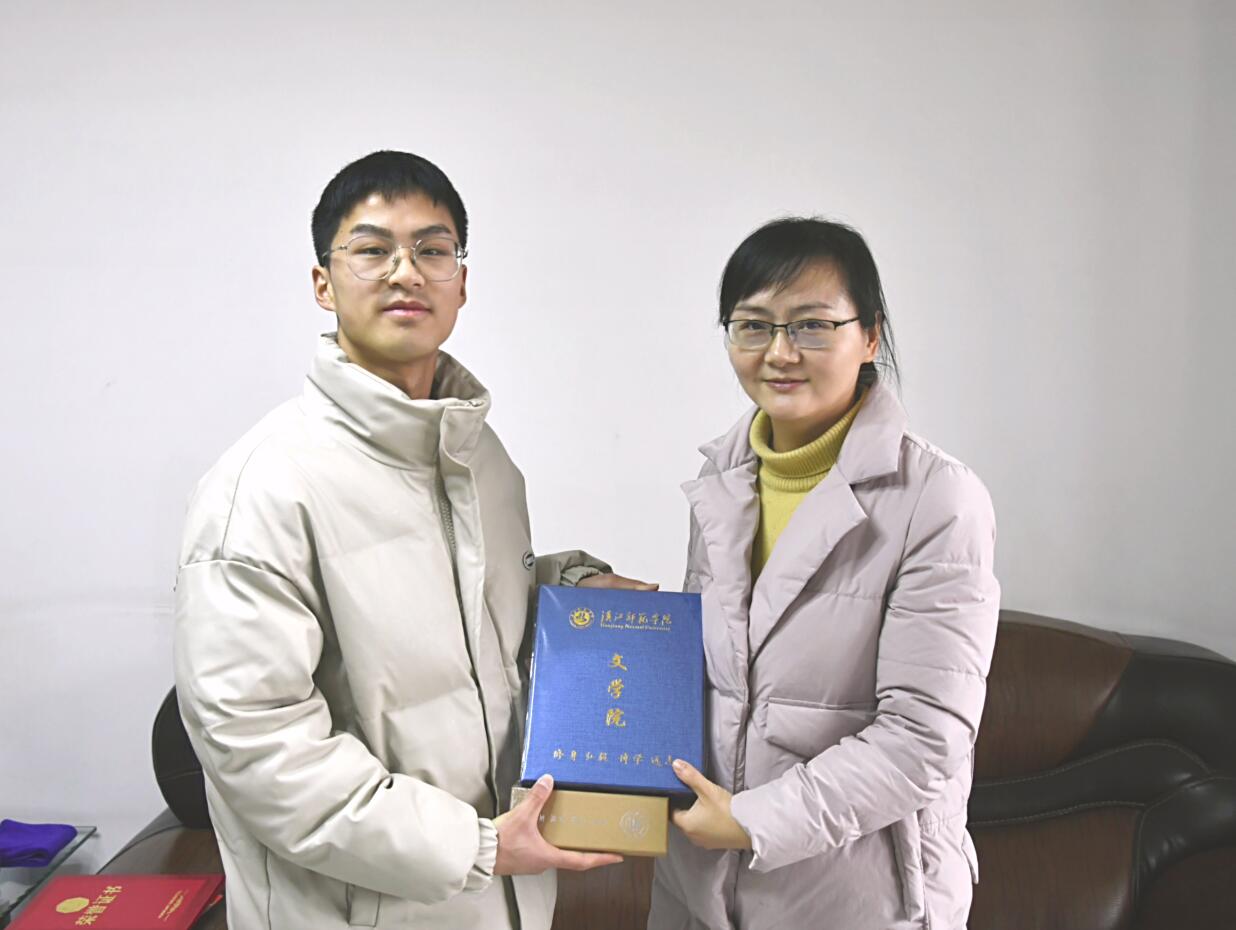 伟德国际1946bv官网党总支副书记任自玲代表学院向陈星天赠送了学院的文创纪念品,感谢他为伟德国际1946bv官网学子树立了榜样,鼓励他坚持学习、进一步提升个人思想觉悟,更好地展现大学生积极向上的精神风貌。