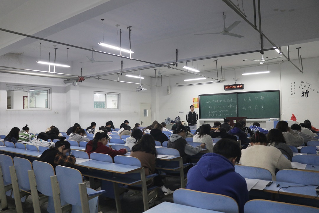 11月4日,在新闻传播教研室的组织下,对2021级广播电视编导全体学生进行专业知识测试,考场设置在崇文楼b705。