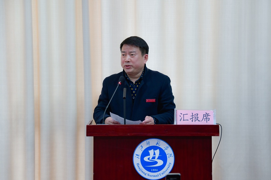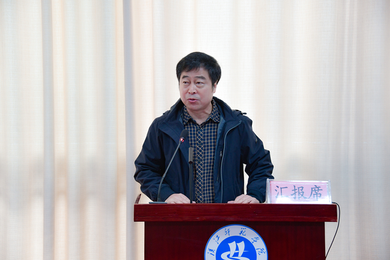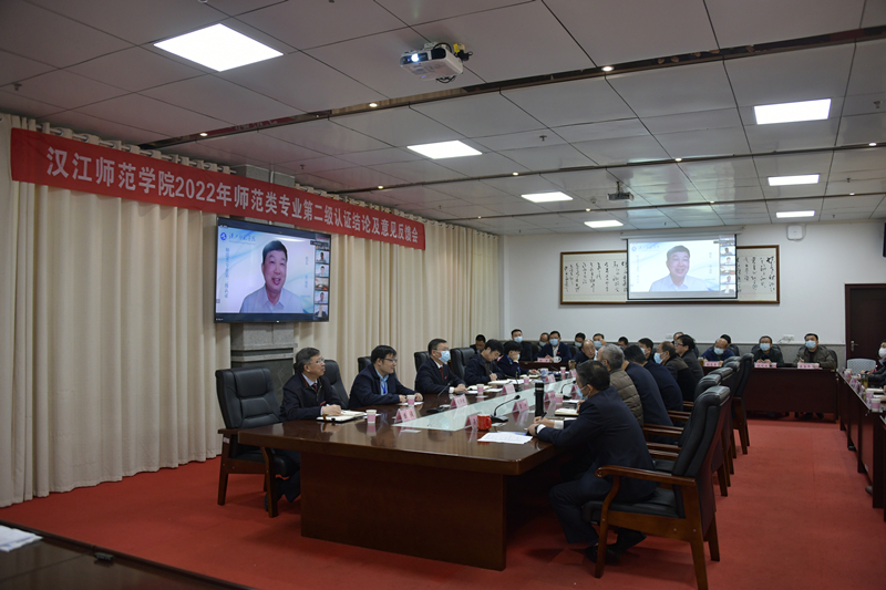 湖北省教育评估院蔡昆主任通报了湖北省普通高校师范类专业第二级认证的整体情况,对学校师范类专业建设提出了意见建议。