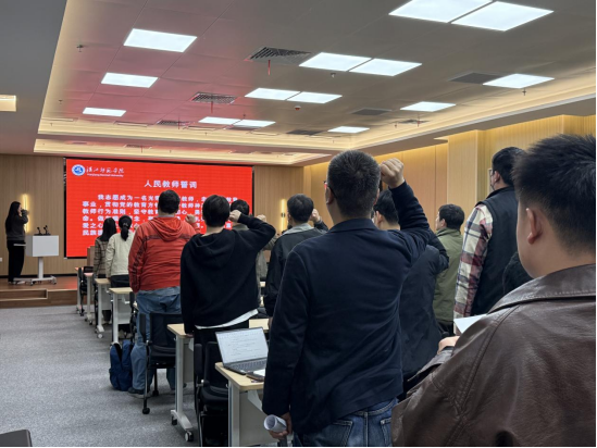 会上,赵彦龙等四位教师代表结合自身岗位职责和学习心得作了交流发言。全体参会教师重温了《人民教师誓词》,对照《新时代高校教师职业行为十项准则》开展了自查自纠并签署《伟德国际1946bv官网教师师德师风自查自纠表》。
