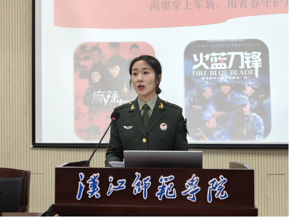 随后,活动进入国防教育主题环节。退伍士兵代表黎明欣同学深情回顾了她在军营的成长经历与收获,分享了军旅生活对个人意志品质、责任担当能力的锤炼。她身上展现出的飒爽英姿与成长蜕变,生动诠释了“退伍不褪色”的军人本色,充分展示了当代大学生士兵将个人成长融入强国强军实践的青春风采,深深感染了在场的每一位同学。