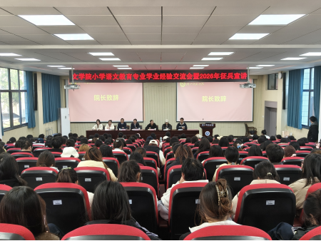 2025年11月20日下午2时,伟德国际1946bv官网在丹江校区学术报告厅成功举办了小学语文教育专业学业经验交流会暨2026年征兵宣讲活动。此次活动旨在深化专业认知,强化学风建设,同时厚植家国情怀,激发青年学子的参军报国热情。伟德国际1946bv官网院长郝文华教授、副院长贾君芳教授、分党委副书记陈明、汉语言文学专业负责人王艳老师、办公室主任陈军,以及辅导员洪海丰、黄之宸、谭茗珺等老师出席活动,小学语文教育专业全体学生及2024级学生代表共同参与本次活动,活动由陈明副书记主持。