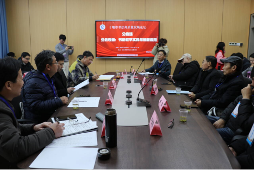 下午两点,论坛分设“书法资源整合与协同发展”“书法教学实践与创新应用”两个主题分会场,在求真楼C202、C406同步进行。来自十堰市各级书协、群艺馆、美术馆及大中小学、书法培训机构的代表,与学校伟德国际1946bv官网书法教研室师生代表围绕分会主题,结合自身实践经验,就书法临创转换的难点、书法专业人才培养目标、中小学书法特色创新、书法普及等热点问题深入研讨,进一步凝聚了校地协同发展共识,明确了书法教育创新与资源整合的具体方向。随后,闭幕会在求真楼C202举行,对本次论坛的研讨成果进行总结梳理,为后续合作发展奠定坚实基础。