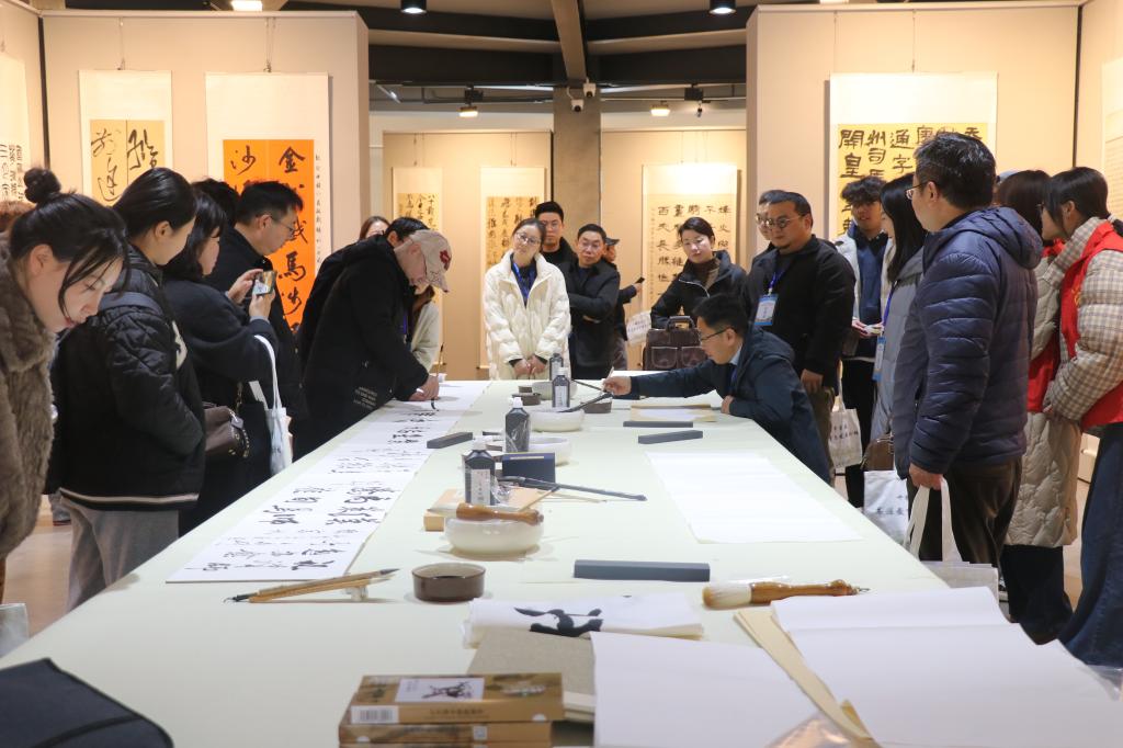 中午,卿云美术馆内笔墨飘香,一场别开生面的笔会顺利开展。与会书法爱好者现场挥毫泼墨,以笔传情、以墨会友,交流创作技艺,展现书法艺术的独特魅力,为论坛增添了浓厚的文化氛围。